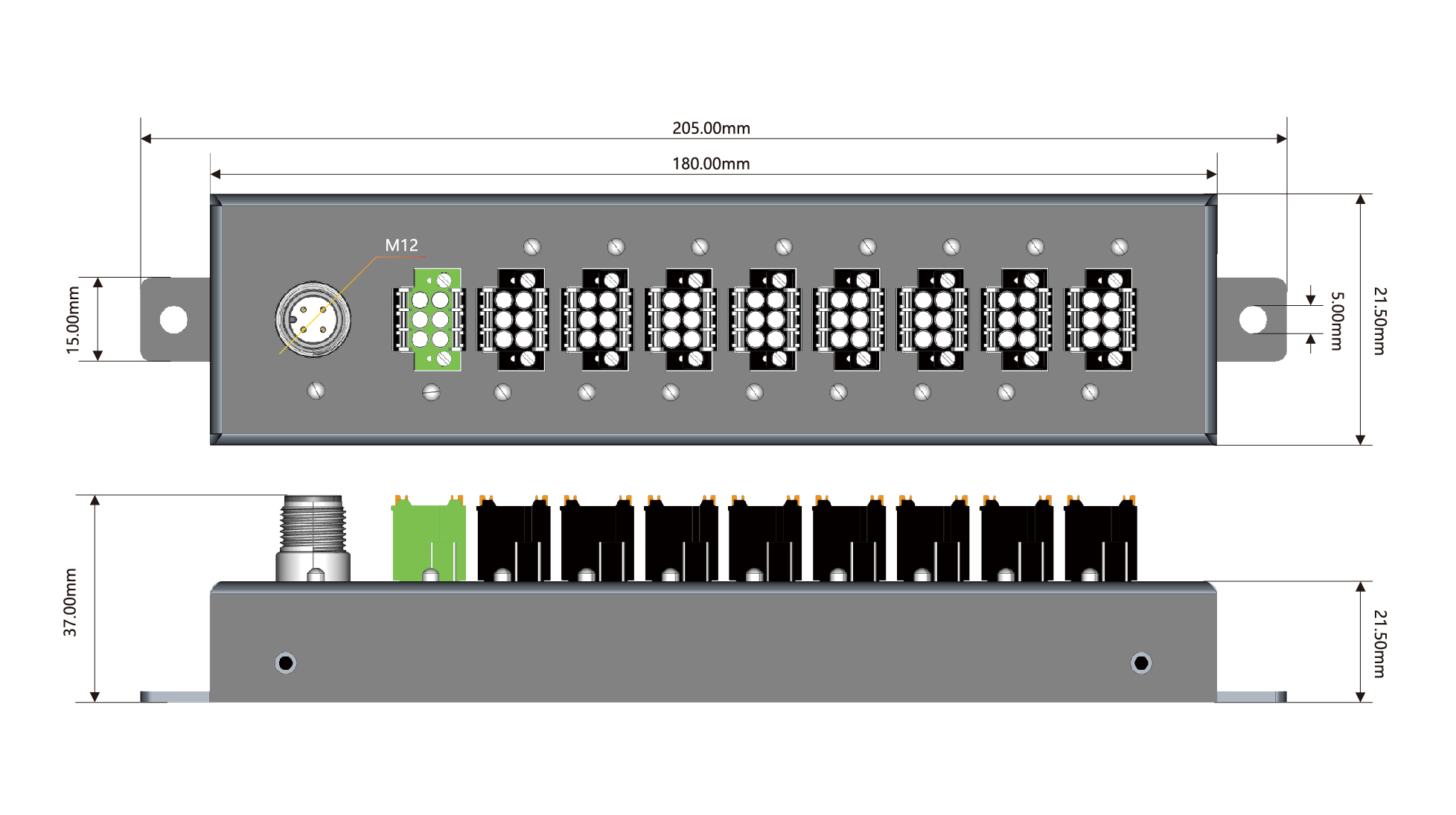 電源接口:綠色,2*3P歐式可插拔彈簧端子,帶鎖定功能