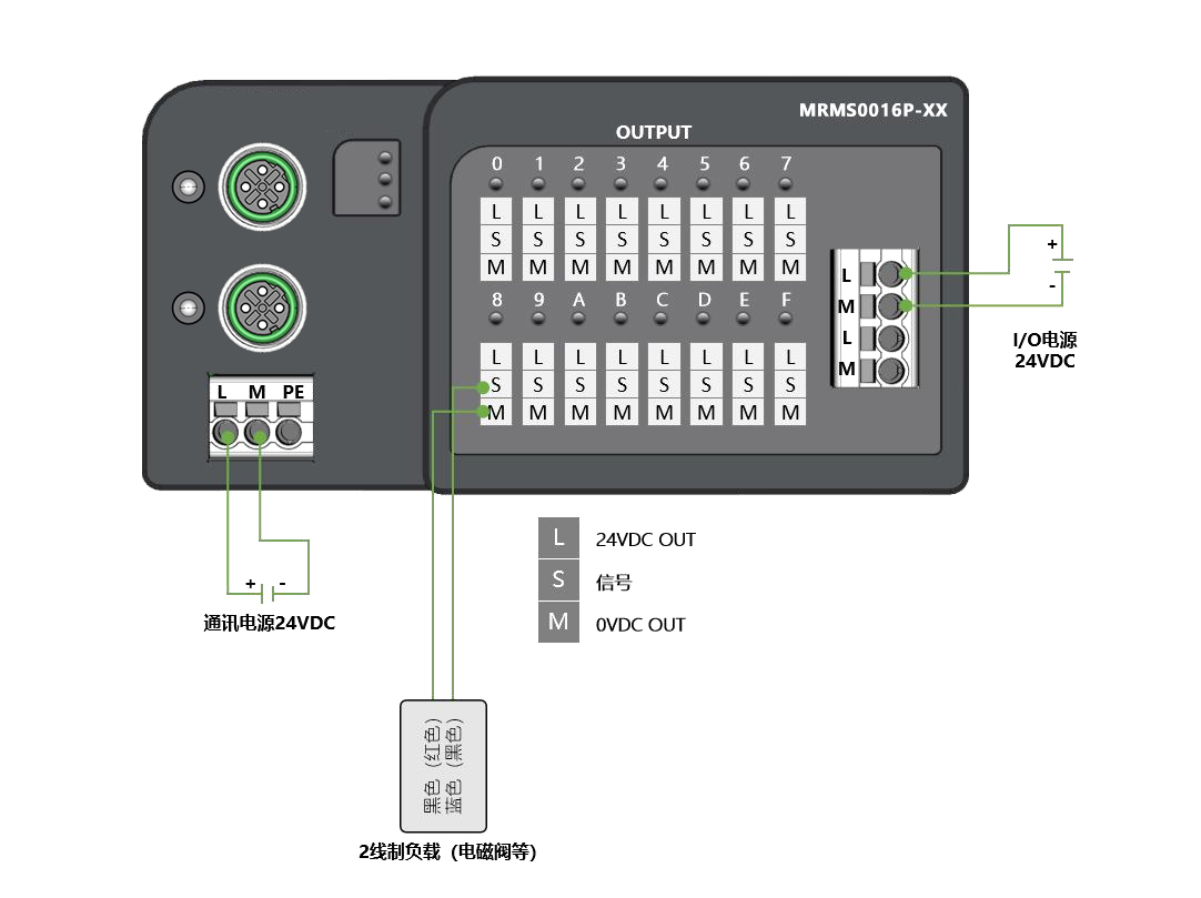 面板式快接線分布式I/O,EtherCAT通訊,2xM12,可級聯(lián);數(shù)字量16出 PNP,24VDC,0.5A,歐式彈簧端子;導(dǎo)軌安裝&打孔安裝(下單時需備注)