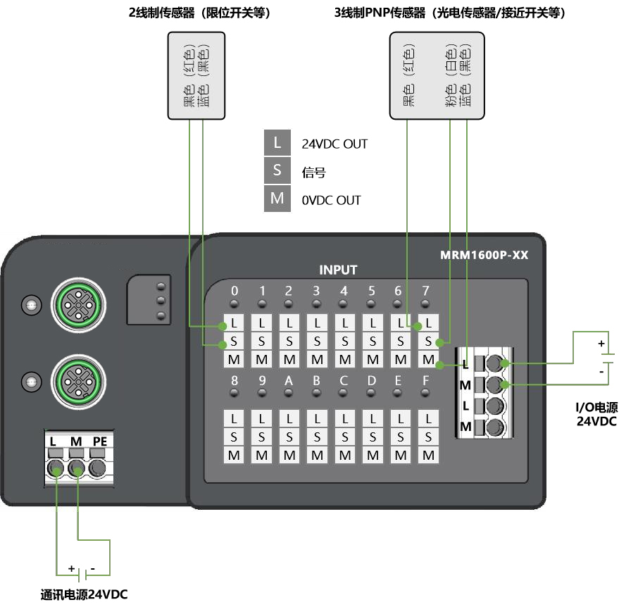 電源接口:模塊供電:3P歐式彈簧端子;負載供電:4P歐式彈簧端子