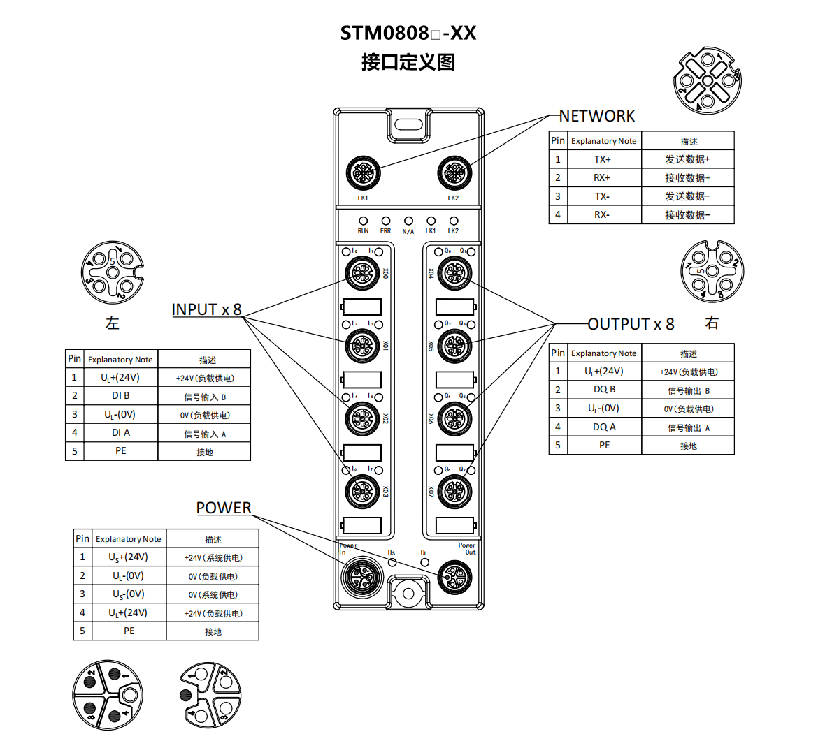 I/O端子:8×M12,A-Code,5P孔